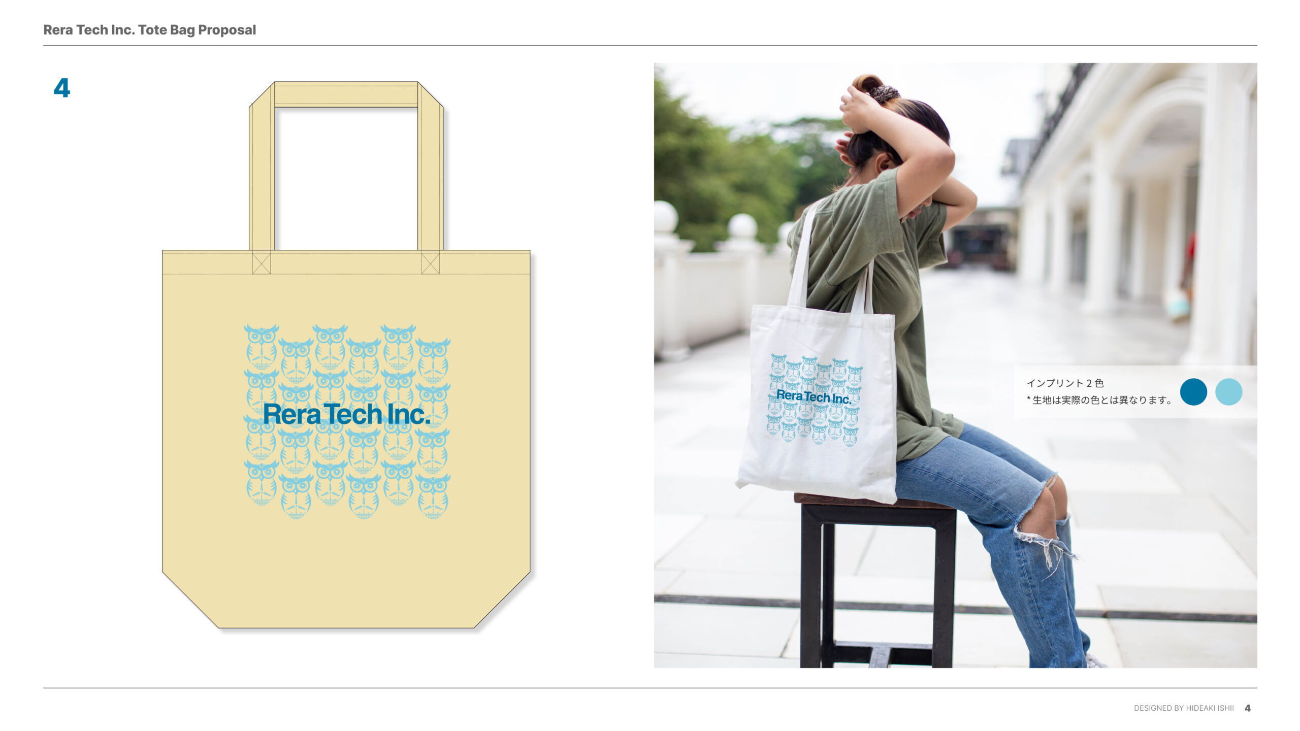 NEWS トートバッグデザインのプロポーザル 今週は私が担当させていただいております、レラテック株式会社さんのトートバッグのデザインをやっております。先方のご提案も受けつつ、4種類デザインさせていただきました。個人的には1番目がお気に入りですが、どの案が通るのか、これから楽しみです!