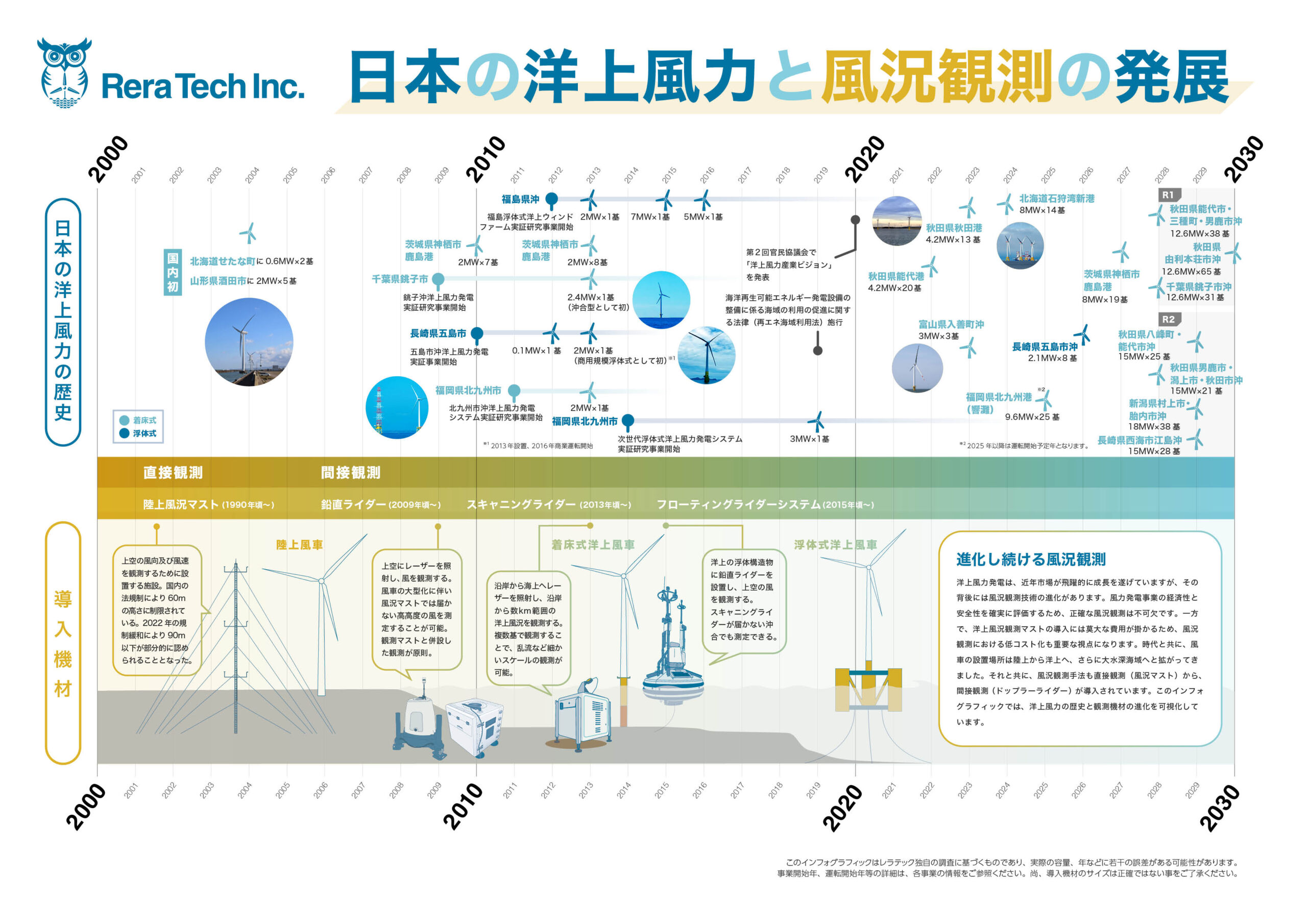 デザインの制作は2枚のインフォグラフィックだったのですが、情報をまとめ、日本の風況観測史における出来事を載せることだったのですが、思った以上に情報のボリュームが多かったり、数値や写真のエビデンスを取るのに先方様に翻弄していただいたりと、なかなかやりごたえのあるプロジェクトでした。